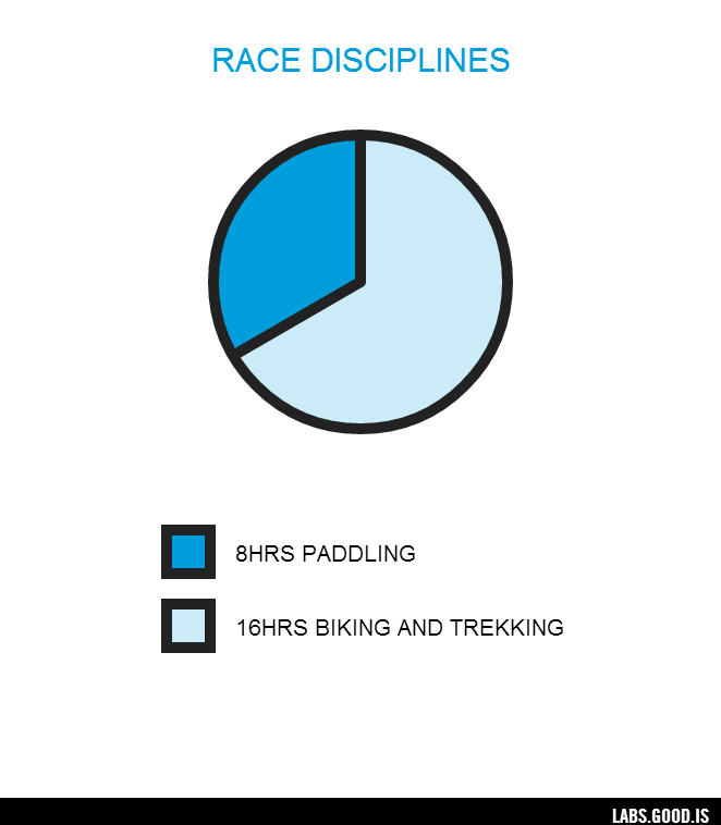 Here is a plausible breakdown, focusing on the paddling slice of the pie.  It would not be unheard of to put 6 to 8 hours of paddling at the front end of a race.  It is however unlikely that the boats will be waiting for teams by the waterside, ready to go at the start of the race.  It is all too tempting to send racers over a mountain pass while carrying their canoe and extra gear for good measure.
